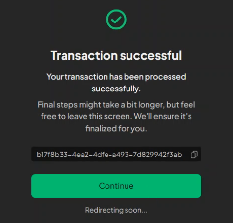 Your deposit is being processed and will appear in your wallet once complete.