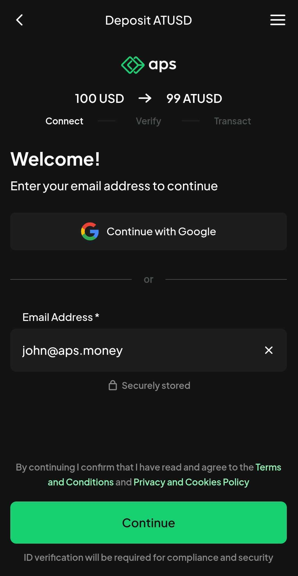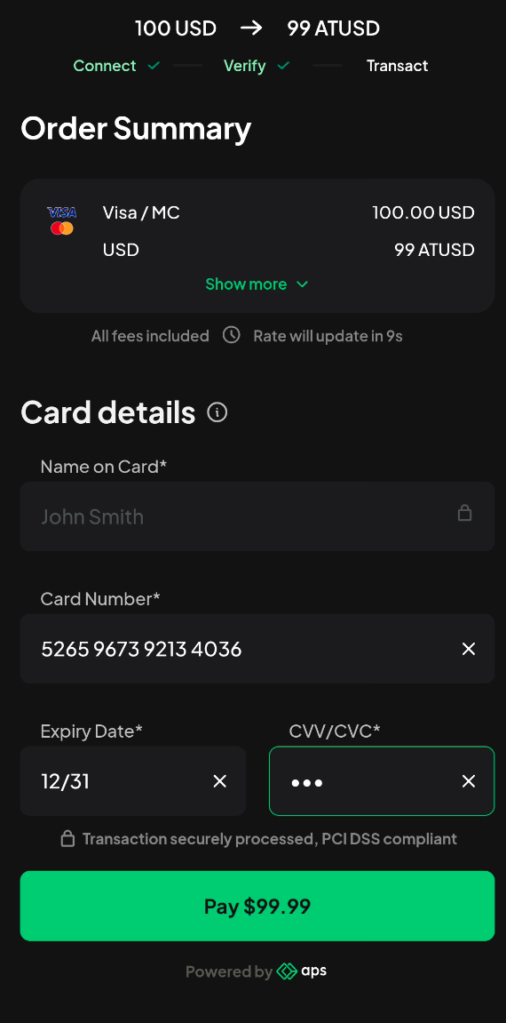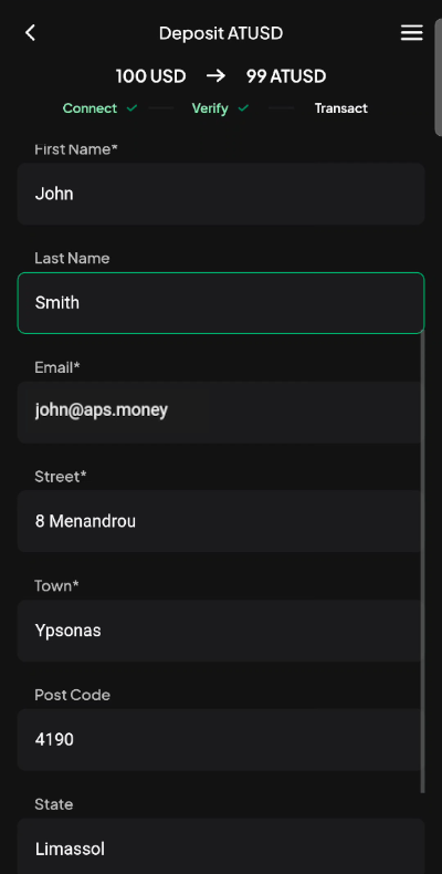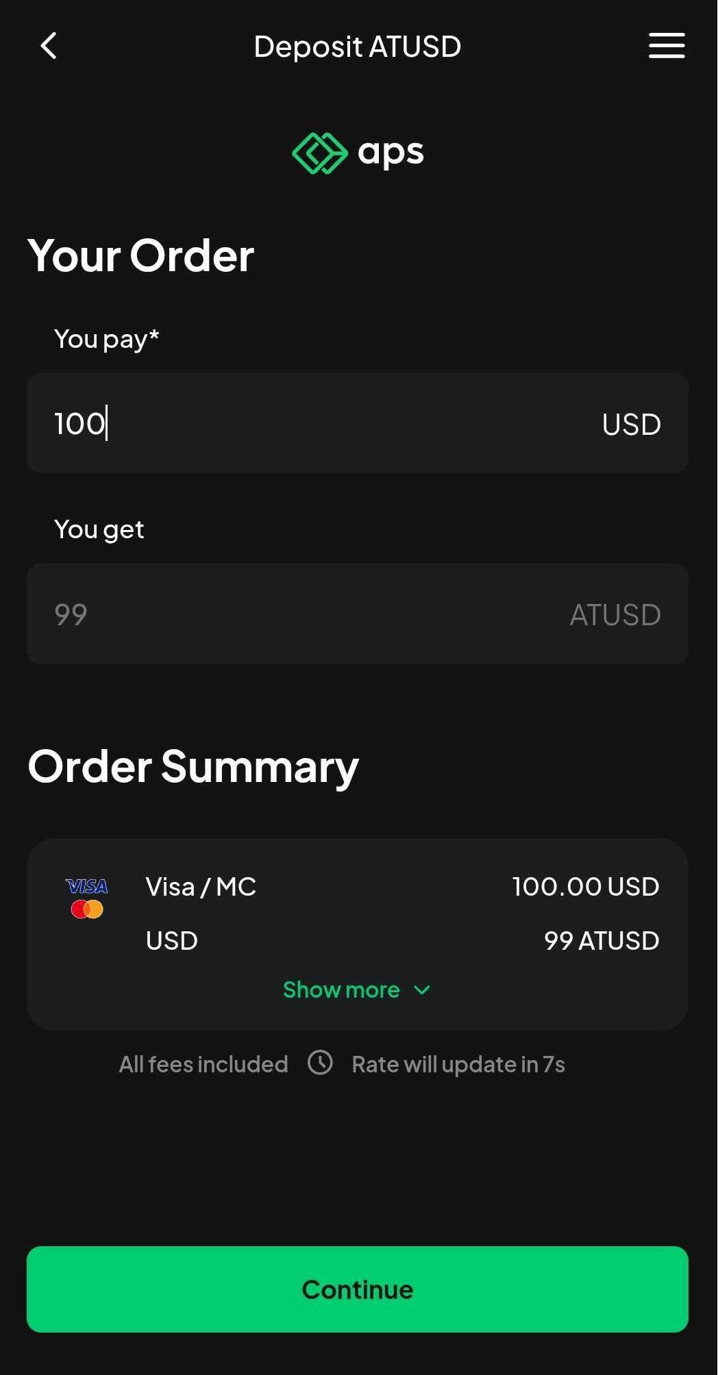 From your preferred wallet, select APS as the vendor to process your deposit.