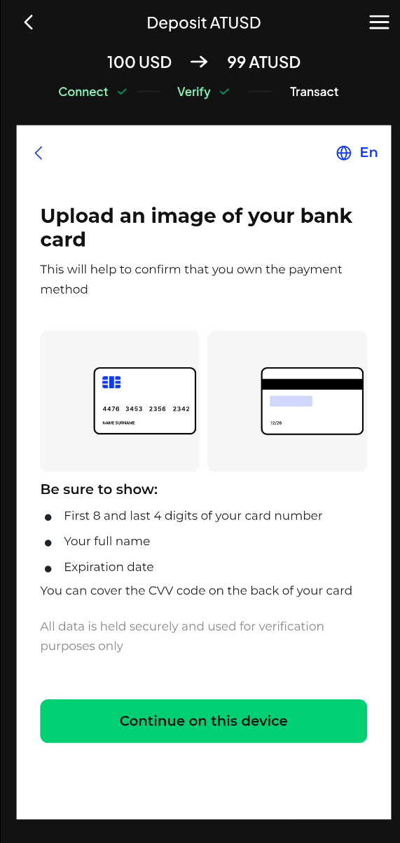 - Bank Card Verification Step